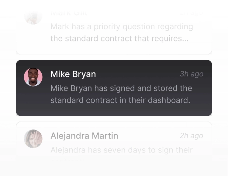 Tracking down paper contracts is a thing of the past. Your clients can e-sign the contract, and save a copy in their dashboard.